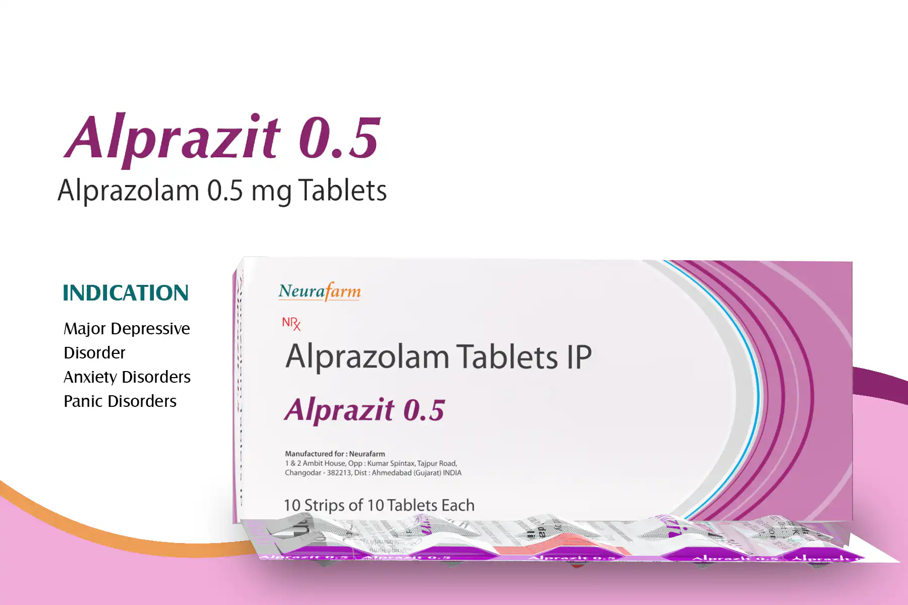 Composition : Alprazolam 0.5 mg. Tablets