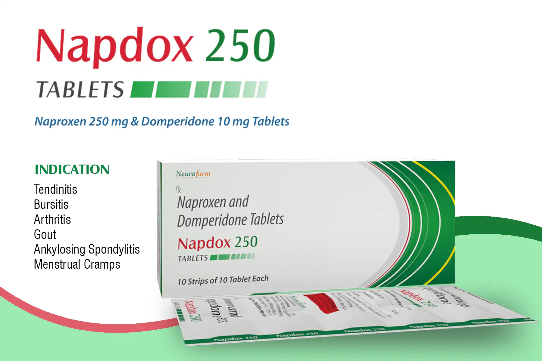 Composition : Naproxen 250 mg. & Domperidone 10 mg. Tablets